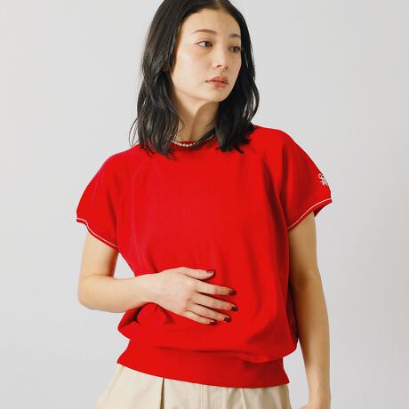 ラグランスリーブが特徴的なサマーニット。