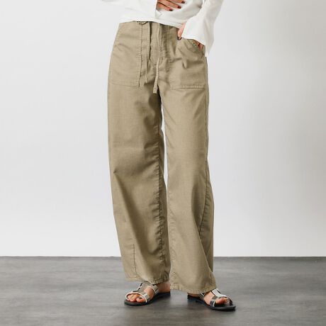 トレンドのカーブシルエットを、軽くサラッとした快適な履き心地のベイカーパンツに落とし込んだトレンドと快適さを兼ね備えた一本。