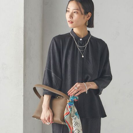オフィス用として1枚でも、デニムやチノパンなどで綺麗めカジュアルにもスタイリングして頂けるブラウスです。