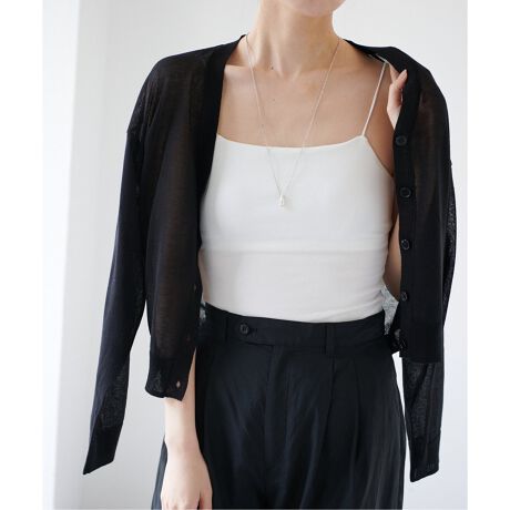 シアートップスやカーディガンのインナーなど、様々なシーンで活躍するパッド付きブラキャミソール。