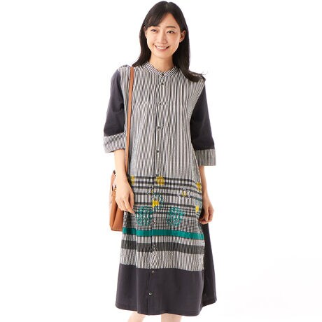 サッカーストライプアートジャカード×30/-天竺ワンピース(前開き)