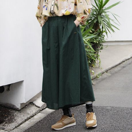 麻のスラブ感と風合いを残しながら、ワッシャー加工でやわらかく仕上げたボリュームのあるフレアギャザーパンツ。