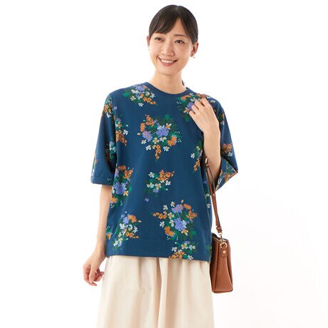 ミニ裏毛ロマンチックフラワープリント半袖スウェット