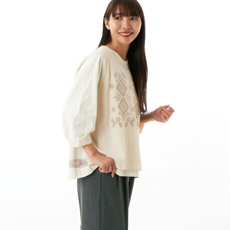 コットンローンワッシャースクエアフォレストボーラー刺繍×天竺カットソー