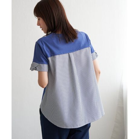 ・身頃はカットソー素材で、背中からシャツ地の切り替えになっているので、後ろ姿も可愛くなっています。