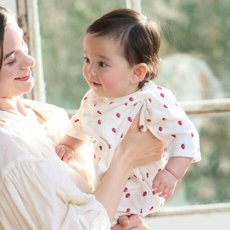 夏に良さそうな生地感で、今は短肌着の上にこれを着せてちょうどいい感じ。柄も可愛くてお気に入りです。