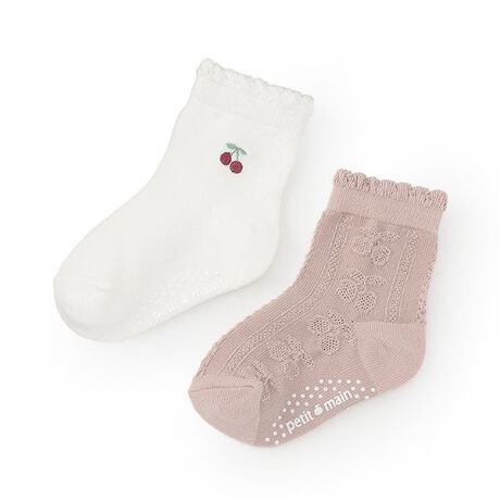 ワンポイント刺しゅうとフロートデザインの種類違いがうれしい二足セットのソックスです。