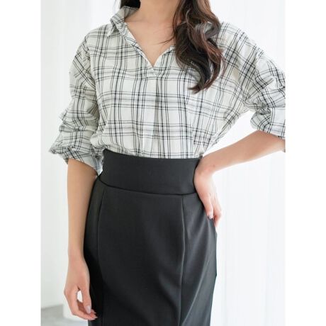 ・ちらっと鎖骨がのぞくスキッパーネックデザインで抜け感◎