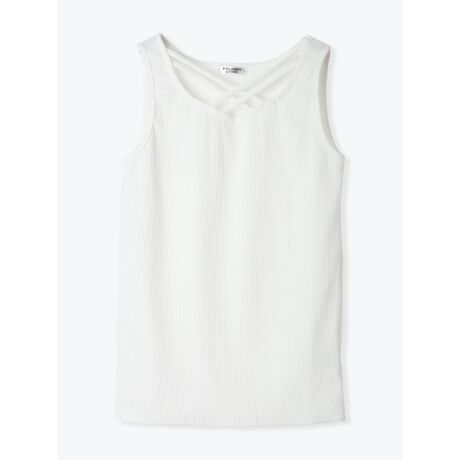 フロントのクロスストラップデザインがコーデのポイントになるタンクトップ。