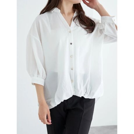 ・裾にタックを寄せることで、フロントインしたようなスタイリングを楽しめる。