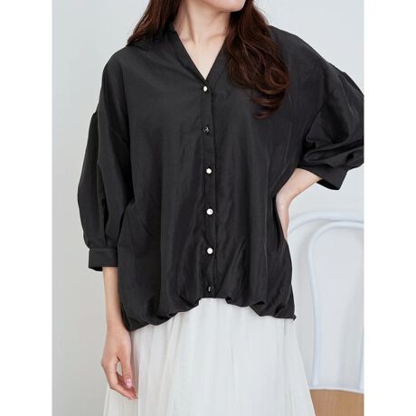 ・裾にタックを寄せることで、フロントインしたようなスタイリングを楽しめる。