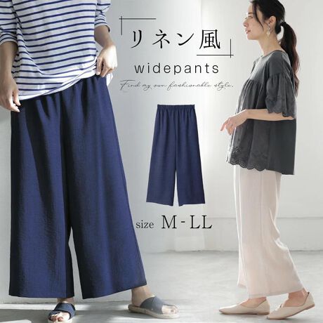 リネン風リラクシーなのにキレイ見えワイドパンツ