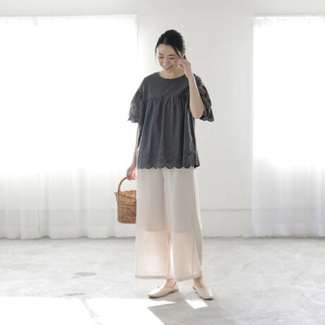 リネン風リラクシーなのにキレイ見えワイドパンツ