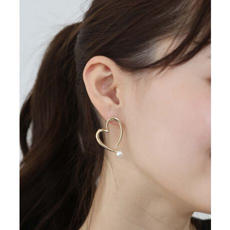 ハートモチーフのメタルフープにパールをあしらった、大人可愛いデザインのピアス。