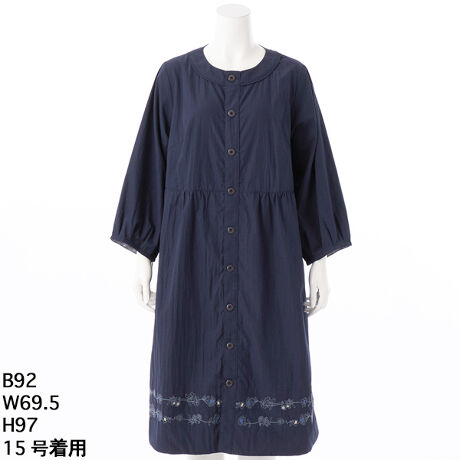 フラワーステッチ刺繍がポイントのワンピースコート。