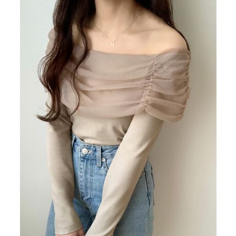 オフショルシャーリングトップス