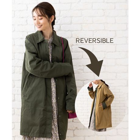フェミニンテイストで明るい独自のスタイルが特徴的な【indi & cold】のリバーシブルステンカラーコート。