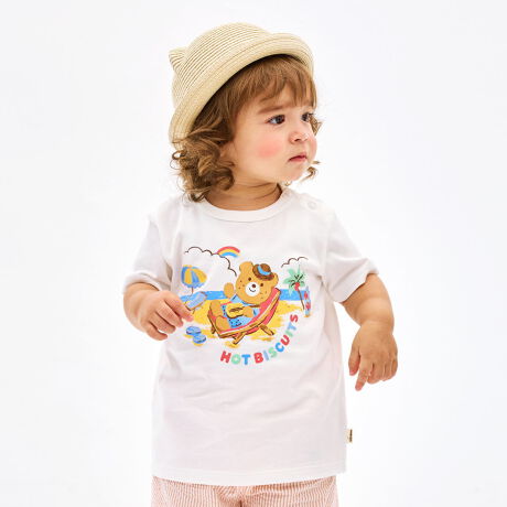 ミキハウス ホットビスケッツのアウトドアデザインの半袖Tシャツ。