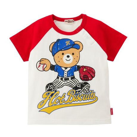 ミキハウス ホットビスケッツのベースボールデザインの半袖Tシャツ。