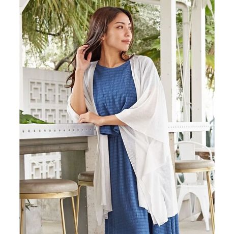 凹凸ストライプのさらっとした上品な素材感のカーディガン。腰まで隠れるゆったりとしたロング丈、しわになりにくいポリエステル素材で、持ち運びに便利な巾着付きなので、リゾートのお供に最適。さらっと羽織ればどんなコーデもきまります。