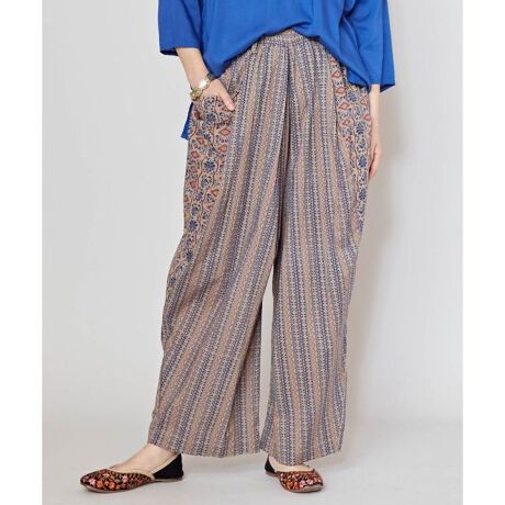 [型番:IAC-5158-2025]インド更紗をモチーフにした花柄×ストライプ柄のパンツ。涼し気な薄手の綿素材が肌触り良く、使いやすい一枚。大きな右ポケットがポイント。
