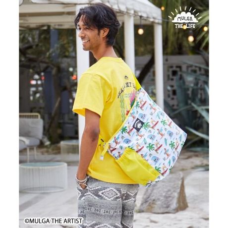 【Kahiko×MULGA THE LIFE】オーストラリアの人気アーティスト「モルガ」とSURF&Palmsのコラボのショルダーバッグ。コラボのラバーパッチがポイント。お手入れが楽なポリエステル素材です。