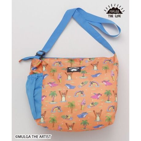 【Kahiko×MULGA THE LIFE】オーストラリアの人気アーティスト「モルガ」とSURF&Palmsのコラボのショルダーバッグ。コラボのラバーパッチがポイント。お手入れが楽なポリエステル素材です。