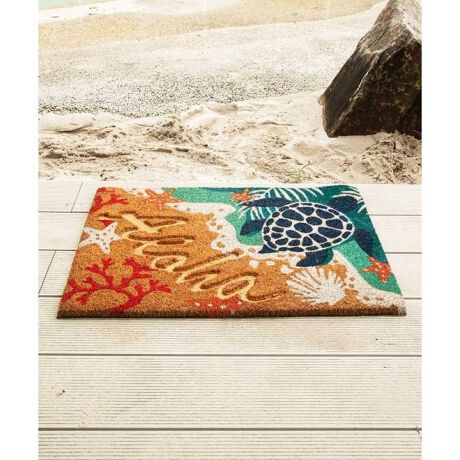 [型番:4IFP5102-2025]ハワイの豊かで華やかな自然を感じさせてくれる、天然素材のココヤシマット。玄関に置くだけで一気にハワイらしい空間を演出してくれます。柄にカービングがあるのが特徴で凹凸感が更に浮き出て可愛らしいのがポイントです。裏面滑り止め加工付きで、室内へ砂や泥を入りにくくしてくれます。裏面滑り止め加工