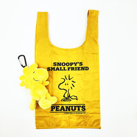スヌーピー ぬいぐるみエコバッグ ウッドストック イエロー お買い物 かばん マスコット カラビナ