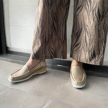 甲のパンチングデザインが目を惹くドライビングシューズ。