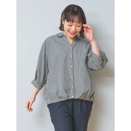 ・裾にタックを寄せることで、フロントインしたようスタイリングを楽しめる。