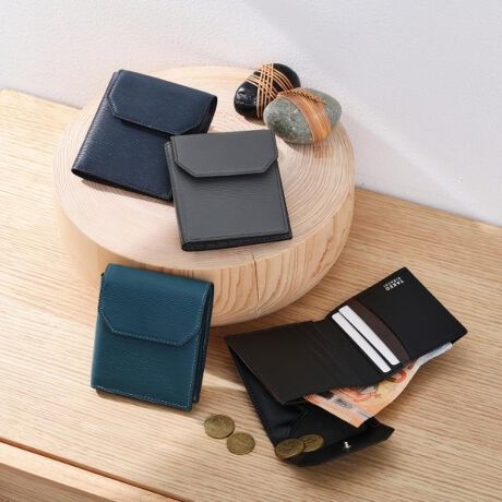 2つ折り財布よりもさらにコンパクトなデザインながら、お札を折り曲げることなく収納が可能で、小銭も取り出しやすく、必要最低限のカードも収納できるとても使いやすい設計になっています。
