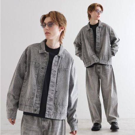 ブラック、ネイビーはワンウォッシュにブラスト加工、ライトグレーはブラックをブリーチ後にブラスト加工とヴィンテージ感のある加工を施しています。