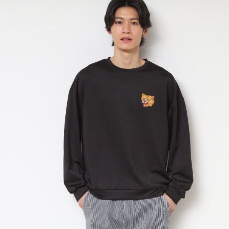 左胸に虎の刺繍をあしらったロングスリーブのプルオーバー
