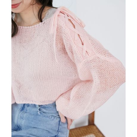 メッシュ見えの編地で程よい肌みせが叶うニットトップス。