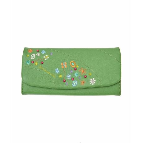 蝶々やお花モチーフのカラフルな刺繍で表現した大人可愛い長財布。風合い豊かなカウレザーにホコモモラらしいカラーリングが魅力的なひと品です。ファスナー仕様の大きく開くコインケースは使いやすい二部屋タイプなのも嬉しいポイント。カードポケットや仕切りも充実させ、実用性とデザイン性を兼ね備えました。開いたときの配色で気分の上がるアイテムに。