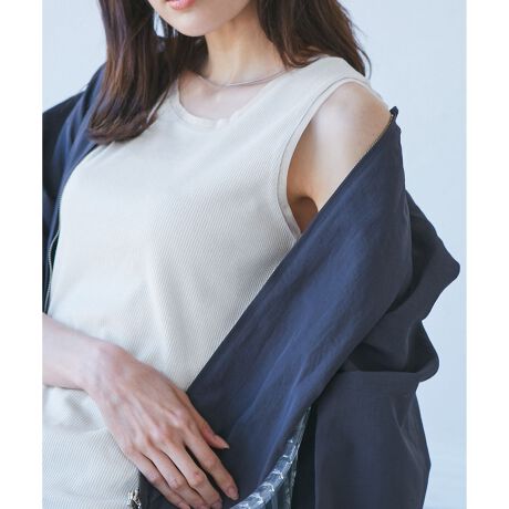 ・ほんのりラメがきらめく、テレコ素材のタンクトップ。