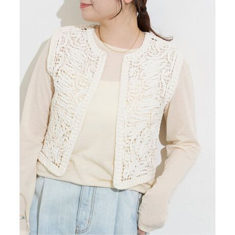 粗野なクラフト感が魅力のコード刺繍のニットベスト。