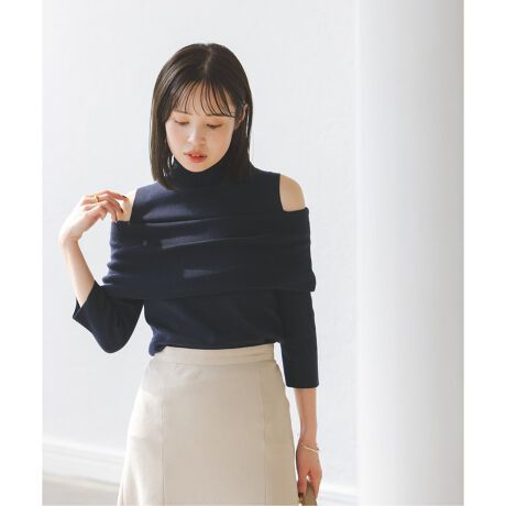オフショルとハイネックが一緒になった着映え力抜群のニットソー。