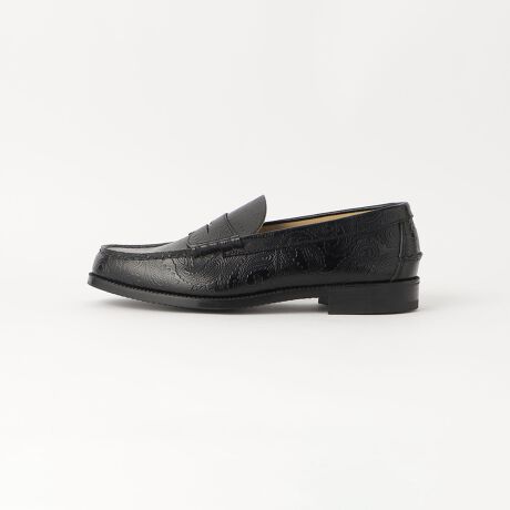 さりげないペイズリー柄が魅力のクラシカルなレザーローファー「MENS EMBOSSED LOAFERS / BLACK PAISLEY」