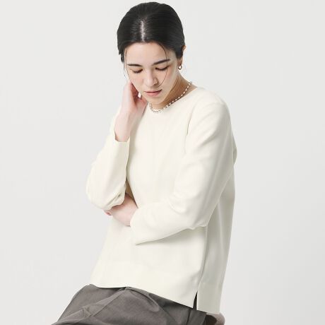 アクセサリーやスカーフなどの小物を添えて一枚ではもちろん、ジャケットのインナーブラウスとしてもおすすめ。