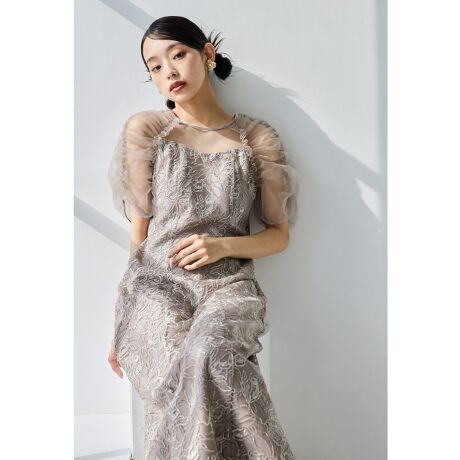 niana ニアナ 刺繍レースとエアリーなチュールを切り替えたオケージョンドレス。