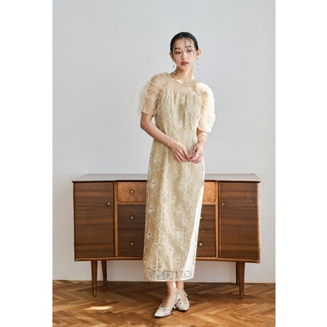 niana ニアナ 刺繍レースとエアリーなチュールを切り替えたオケージョンドレス。