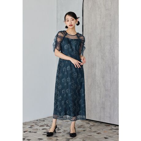 niana ニアナ 刺繍レースとエアリーなチュールを切り替えたオケージョンドレス。