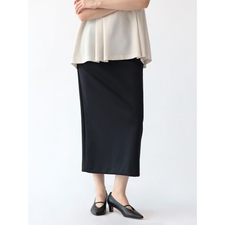 すっきりとしたIラインシルエットが大人らしく決まるスカート。軽量な素材と伸縮性、後ろ裾にはスリットを入れることで窮屈感の無い着心地の良さを実現。ブラウスやシャツなど、ライフシーンに合わせた着こなしをお楽しみいただけます。