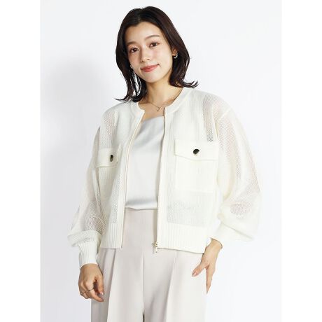 ドライタッチでざっくりと編み込まれたニットには抜け感が生まれ、ポケットとメタルボタンでアクセントを添えます。