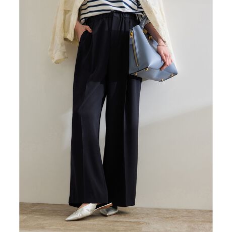 ツータックで、ウエストゴムでイージーに着用できるワイドパンツ。