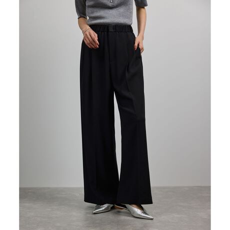 ツータックで、ウエストゴムでイージーに着用できるワイドパンツ。