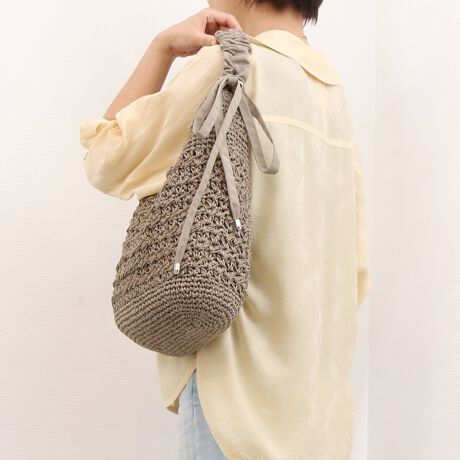 クシュっと寄せたショルダーと柄編みボディがポイントのトートバッグ。