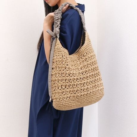 クシュっと寄せたショルダーと柄編みボディがポイントのトートバッグ。